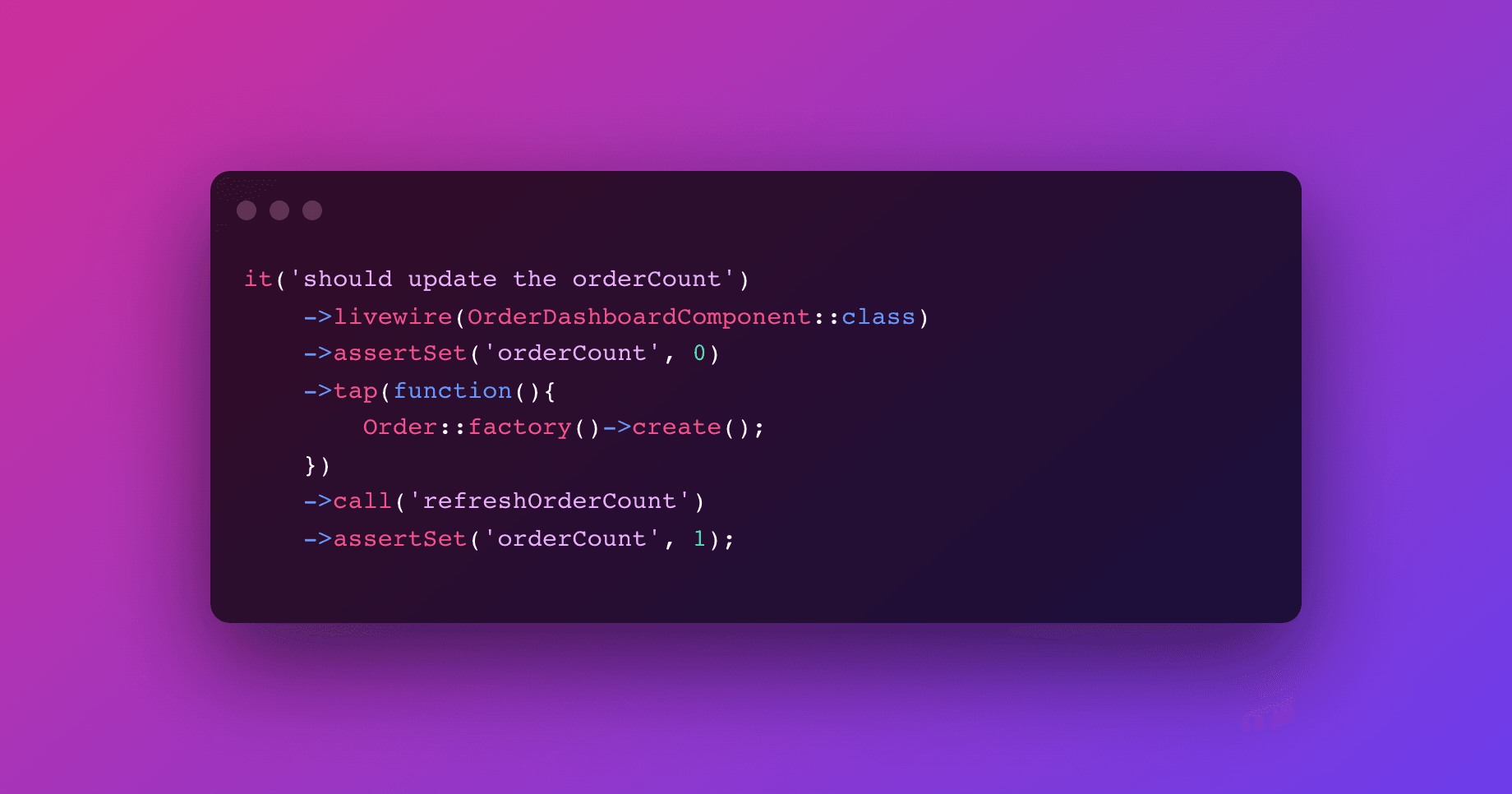 Make changes to the database during a Livewire Pest chain