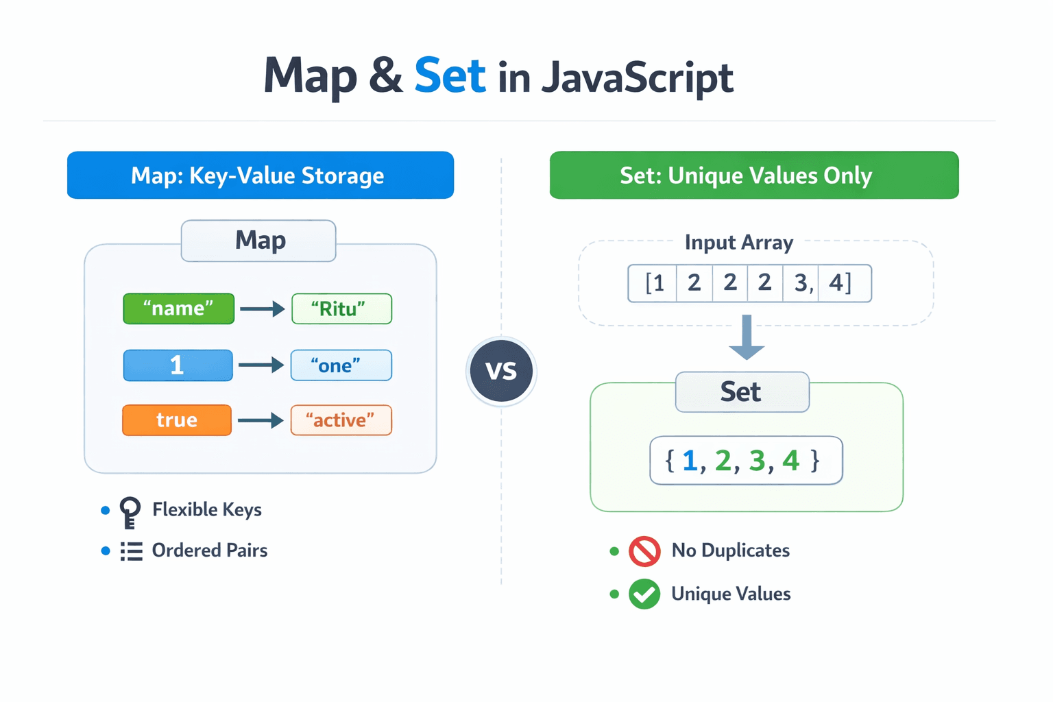 In JavaScript, Map and Set are built-in object types introduced in ES6 (ECMAScript 2015) for managing collections of data efficiently. JavaScript provides many built-in data structures, and two very u