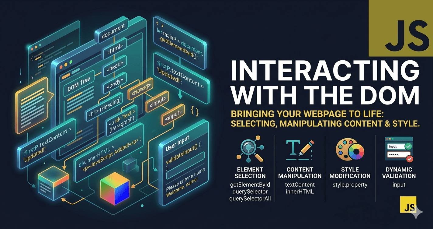 Introduction JavaScript becomes truly powerful when it can reach out of the console and change what the user actually sees. The Document Object Model (DOM) is the bridge between your code and the page