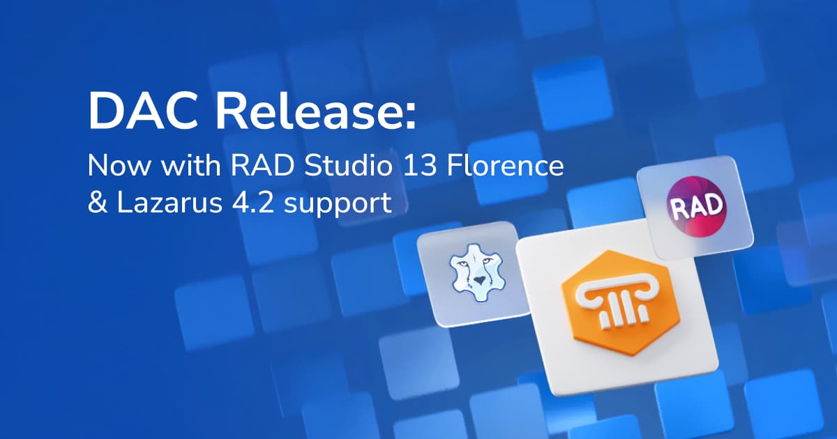 Devart rolled out updated Delphi Data Access Components with expanded database support, enhanced security, and AI-powered features. 📌Following enhancements are included in the release: ✅ Support RAD Studio 13 Florence and Lazarus 4.2 for all DAC pro...