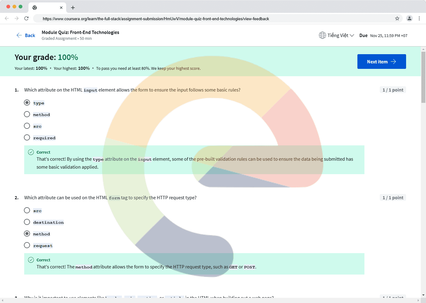 Which attribute on the HTML input element allows the form to ensure the input follows some basic rules? type method src required Which attribute can be used on the HTML form tag to specify the HTTP request type? src destination method requ...