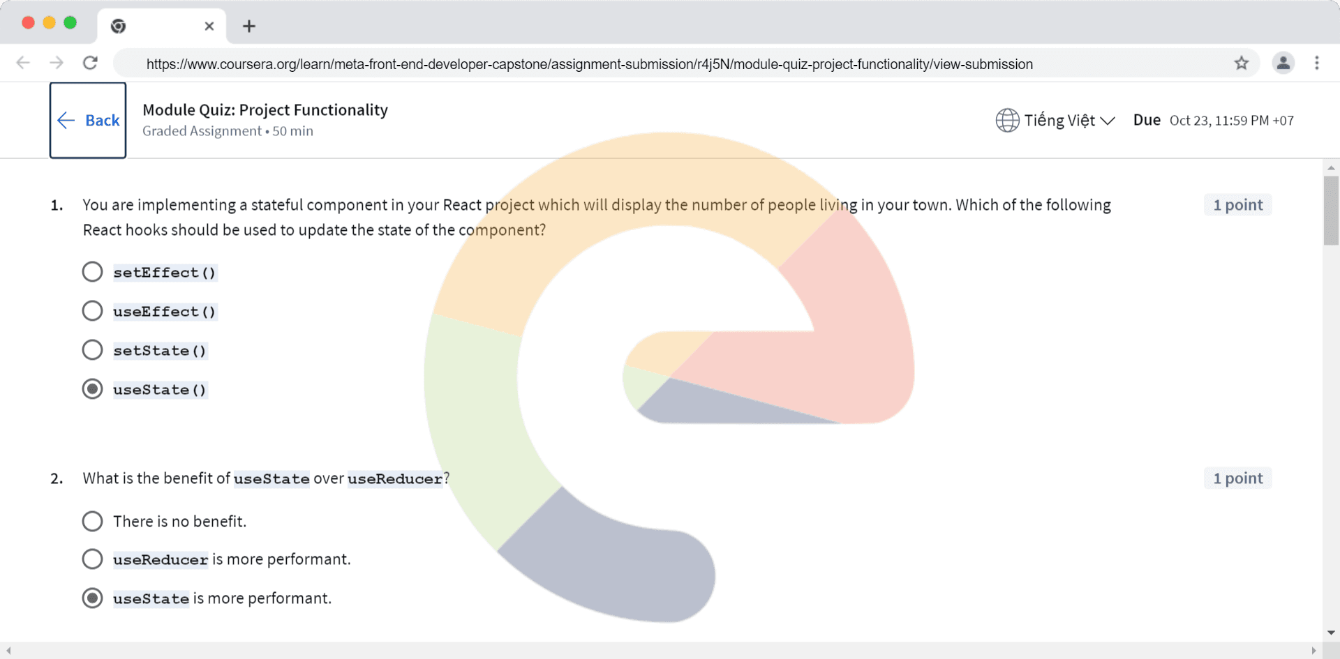 You are implementing a stateful component in your React project which will display the number of people living in your town. Which of the following React hooks should be used to update the state of the component? setEffect() useEffect() setState()...
