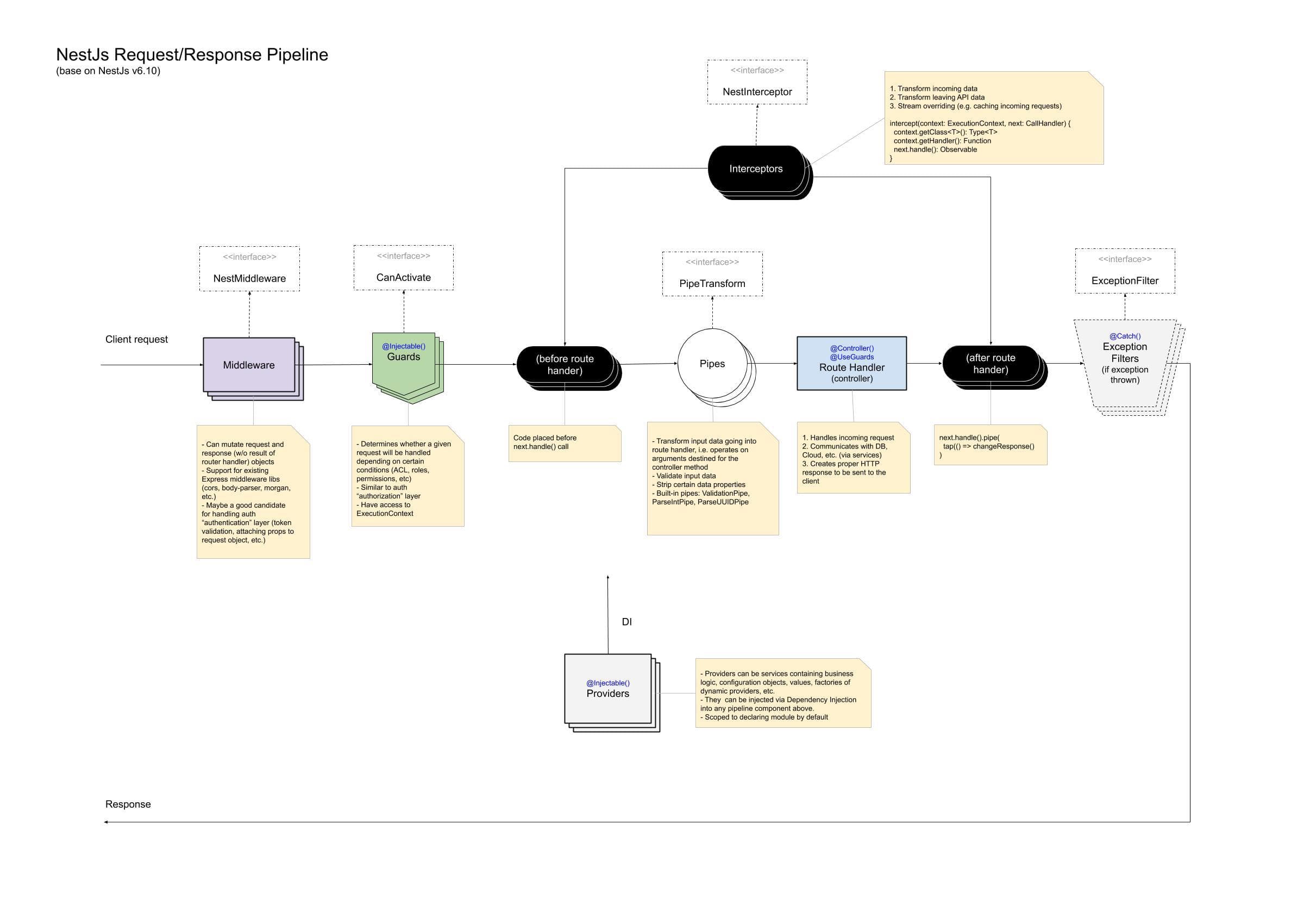 Nest applications handle requests and produce responses in a sequence we refer to as the request lifecycle.