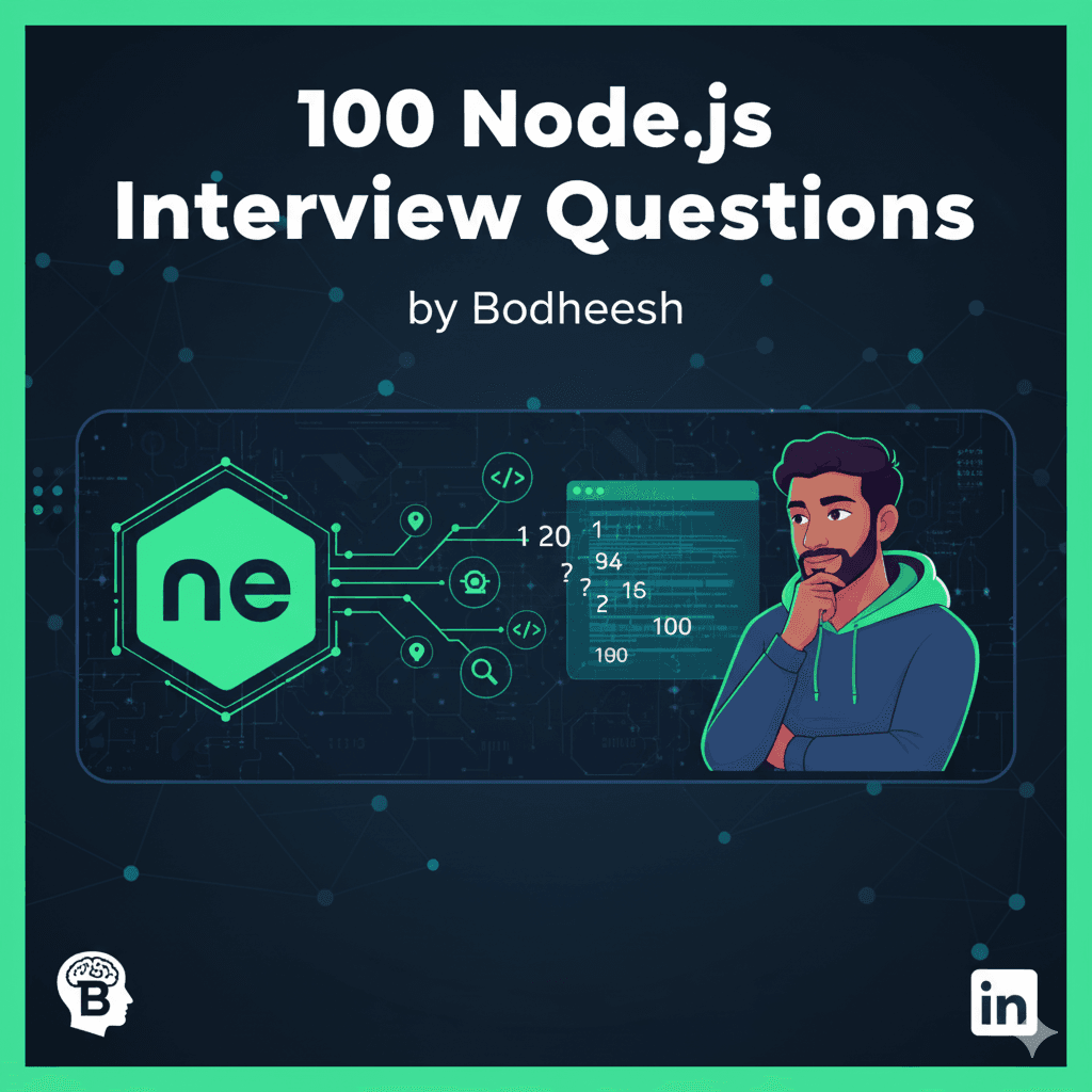 -Bodheesh vc Question, Answer (concise & precise), Pros, Cons, Practical example / snippet. The content is tailored for a 4+ year senior backend developer interview. What is Node.js and when should it be used? Answer: Node.js is a runtime that exec...