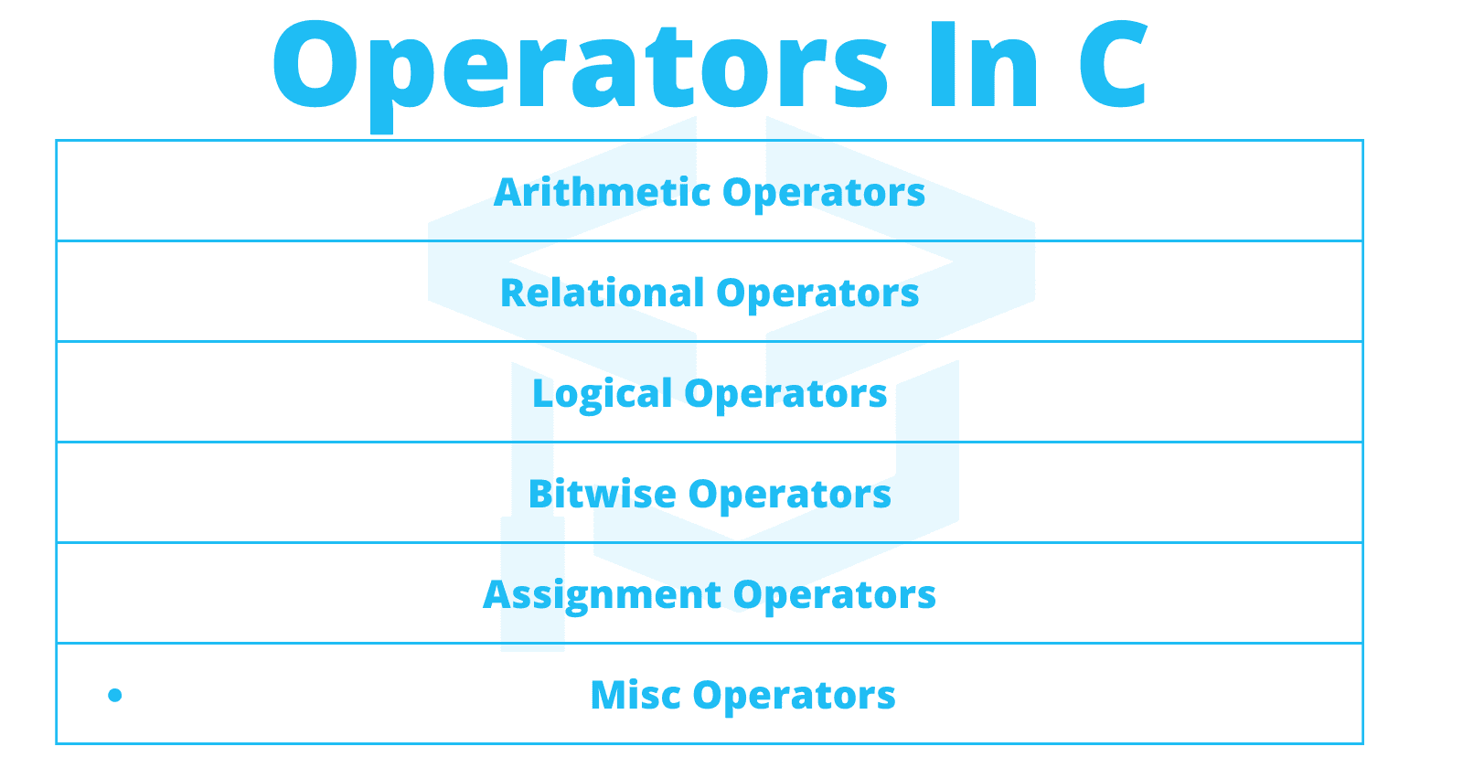 An Operator in computer programming is a symbol that helps us to perform mathematical and logical operations. We have 6 types of operators in C