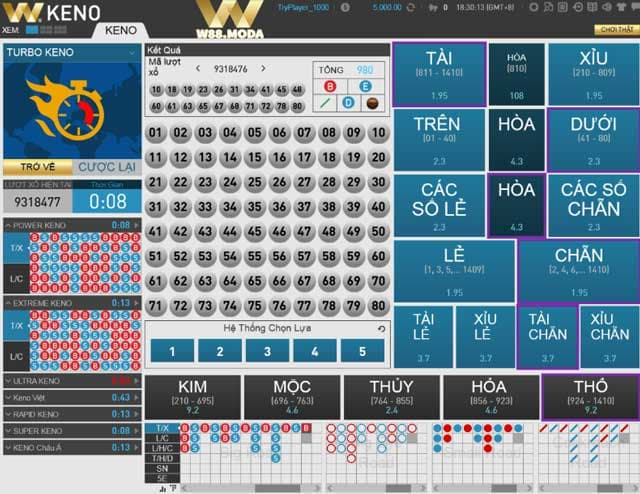 Xổ số Keno không chỉ là một trò chơi dựa vào vận may, mà còn mở ra cơ hội cho người chơi áp dụng các chiến lược cá nhân thông qua việc lựa chọn nhiều loại cược khác nhau. Loại cược Tài/Xỉu cho phép người chơi đoán tổng số điểm từ 20 số được chọn có ...