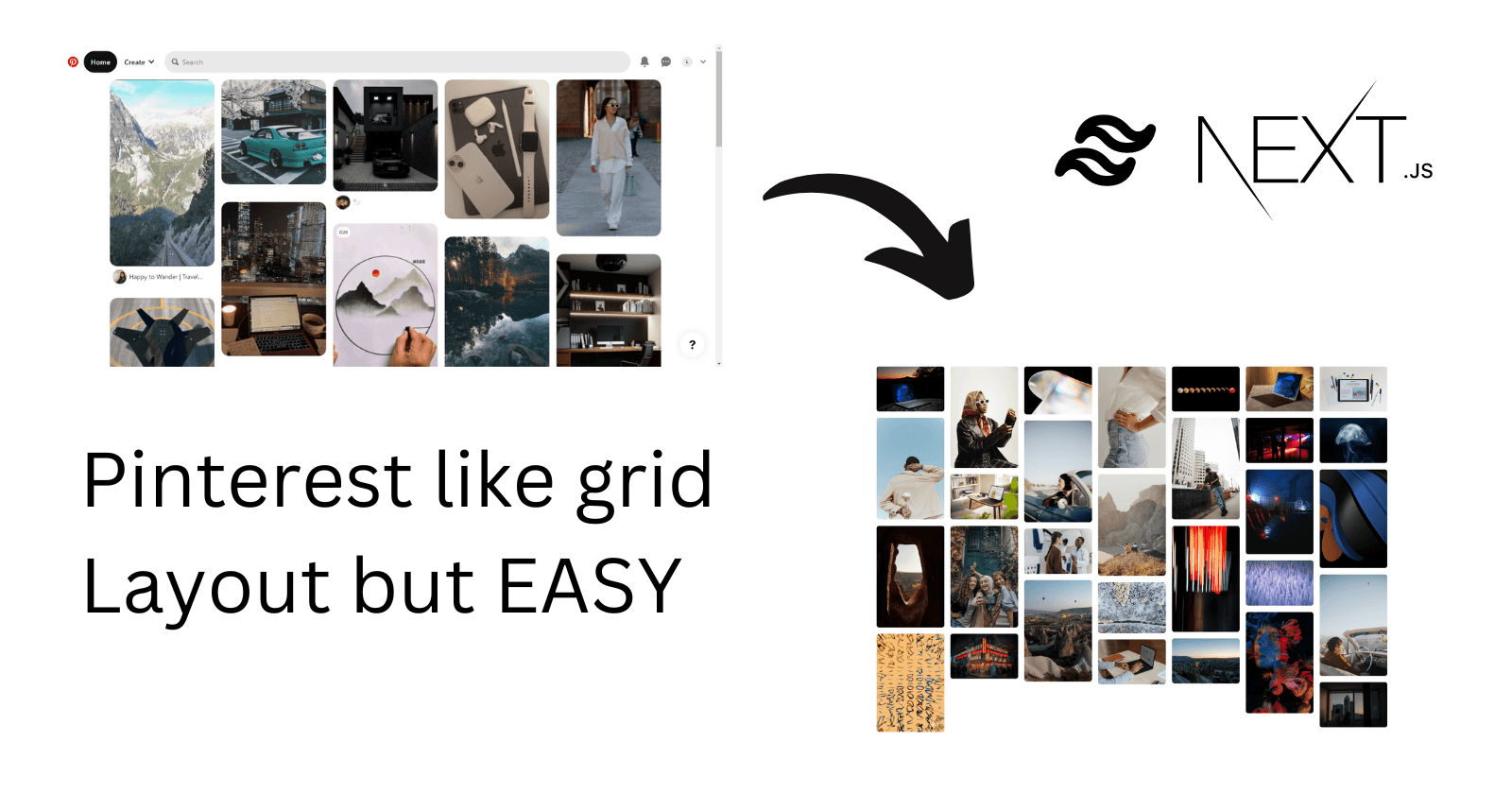 Hey guys, Today we are going to be making Pinterest's masonry grid layout of their home feed. We will be using Next.JS & tailwind CSS with Unsplash API for this project.
