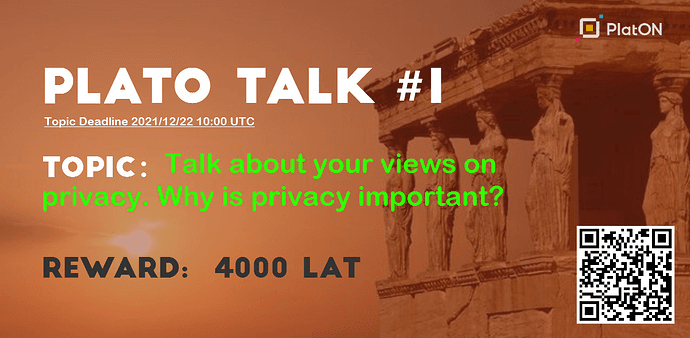 PLATO TALK #1 --- Wonderful discussion sharing TOPIC: Talk about your views on privacy. Why is privacy important? cherima I believe that privacy is the product of human's self-will and social development. It is an independent space established by ...