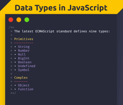 Data type is a kind or form of value store in a declare variable. Is the value store a number or string? Types of data type: a. Primitive data types b. Non primitives data types Primitive Data-types Number String Boolean Undefined Null BigInt ...