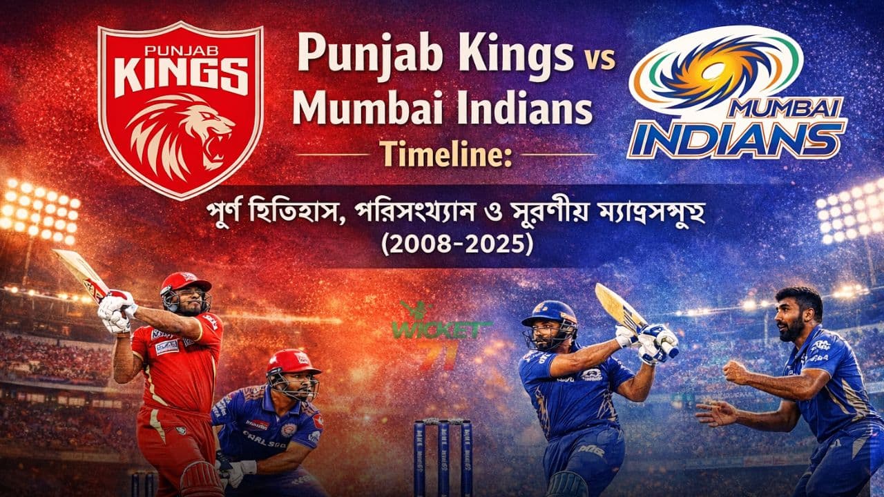 Punjab Kings vs Mumbai Indians Timeline আইপিএলের ইতিহাসে এমন এক অধ্যায়, যেখানে প্রতিটি মৌসুম নতুন উত্তেজনা, নতুন নাটক এবং নতুন স্মরণীয় মুহূর্ত তৈরি করেছে। ২০০৮ সালে Indian Premier League শুরু হওয়ার পর থেকেই এই দুই দল একে অপরের বিপক্ষে প্রতিদ্বন্দ্...