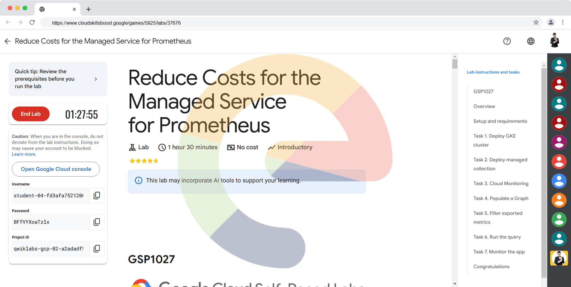 Overview The Google Cloud Managed Service for Prometheus charges for the number of samples ingested into Cloud Monitoring and for read requests to the Monitoring API. The number of samples ingested is the primary contributor to your cost. In this lab...