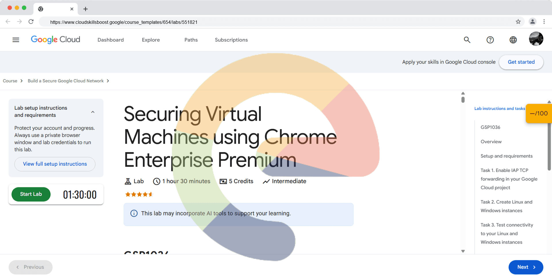 Overview In this lab, you learn how to use Chrome Enterprise Premium and Identity-Aware Proxy (IAP) TCP forwarding to enable administrative access to VM instances that do not have external IP addresses or do not permit direct access over the internet...