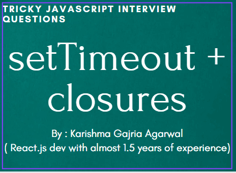 SetTimeout + closures make one of the tricky topic to answer in the Js interviews. So by now you have undestood that this topic is really important , and should'nt be avoided according to interview perspective. Prerequisites: Closures - A closure i...