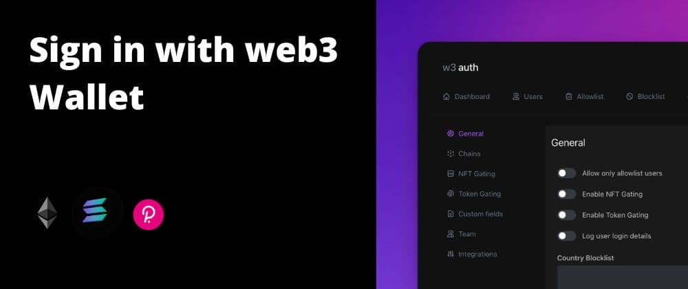 https://github.com/Devzstudio/w3auth Integration Example: https://github.com/Devzstudio/w3auth_demo Documentation: https://w3auth.devzstudio.com/ The authentication and authorisation parts are handled by w3auth. Features ⛓ Multiple Chain Support: T...