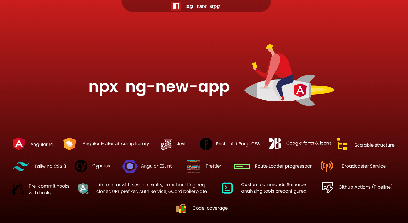 Update Aug-2022: Boilerplate has been updated to the latest angular14, tailwind3, and more. Check out the npm package/GitHub repo readme for more details. A few more stuff along with what's mentioned below is added for better productivity.