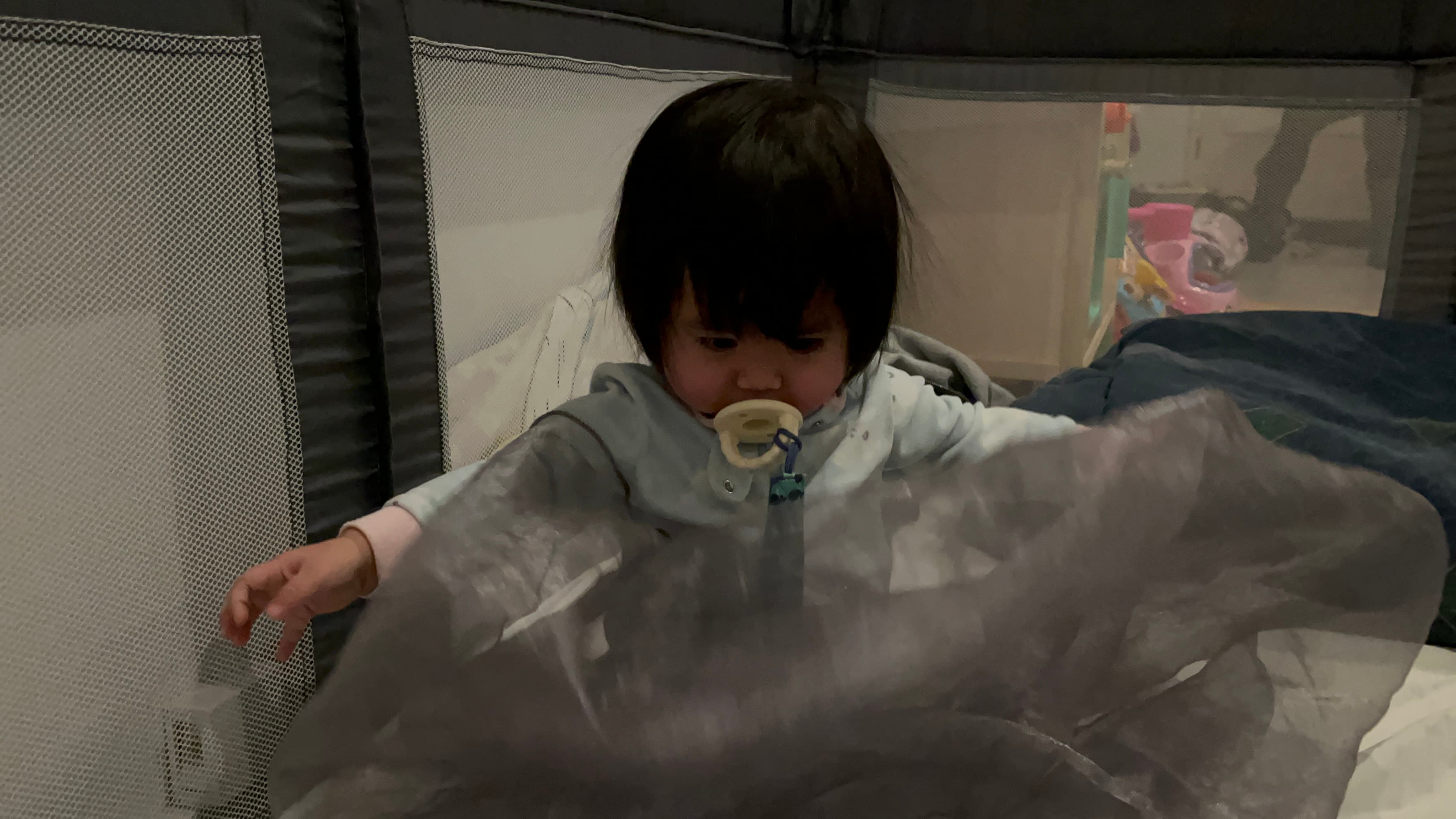 You played with this thing for 10 min which is an eternity for baby attention span. Covered your face with it and quickly uncovered it and laughed a bunch