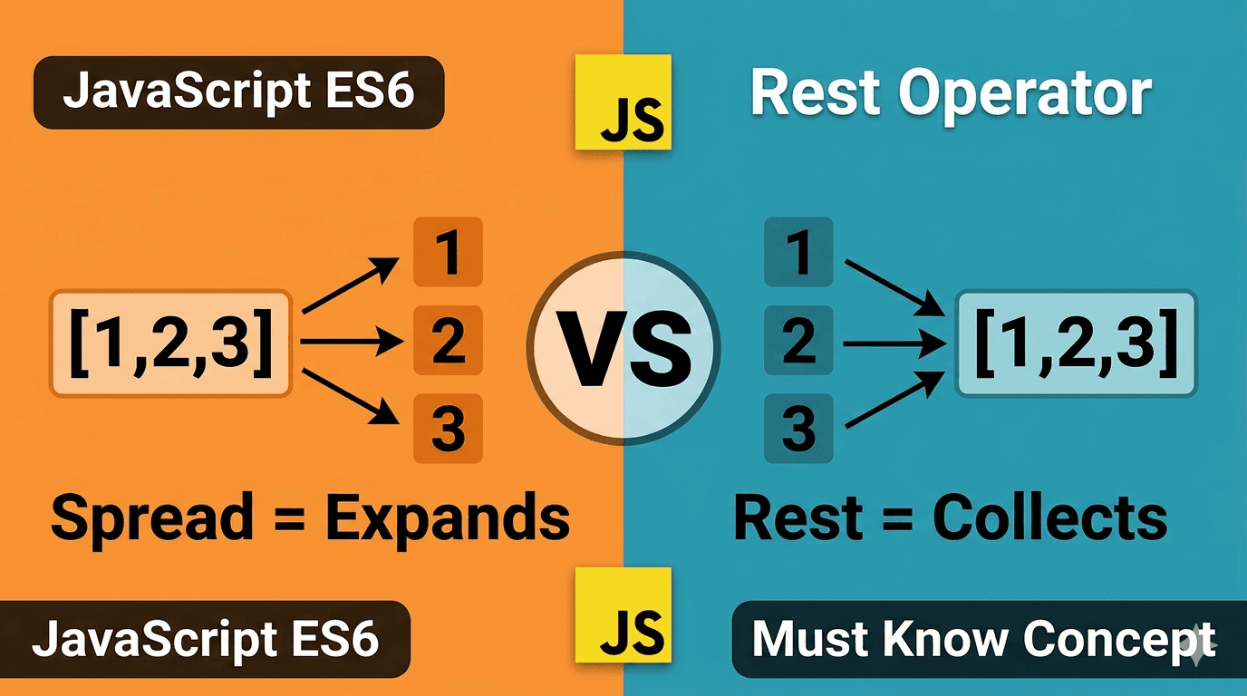 JavaScript introduced the spread (...) and rest (...) operators in ES6. They look identical but behave very differently depending on where they are used. 1. What is the Spread Operator? The spread op