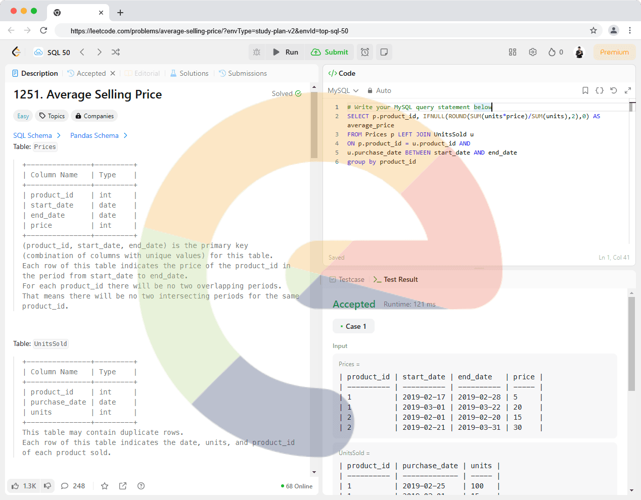 Table: Prices +---------------+---------+ | Column Name | Type | +---------------+---------+ | product_id | int | | start_date | date | | end_date | date | | price | int | +---------------+---------+ (product_id,...