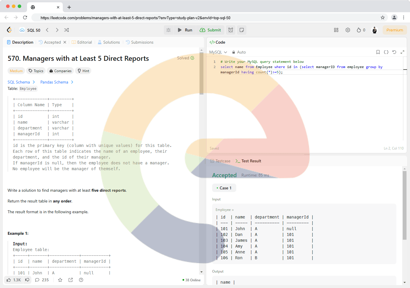 Table: Employee +-------------+---------+ | Column Name | Type | +-------------+---------+ | id | int | | name | varchar | | department | varchar | | managerId | int | +-------------+---------+ id is the primary key (col...