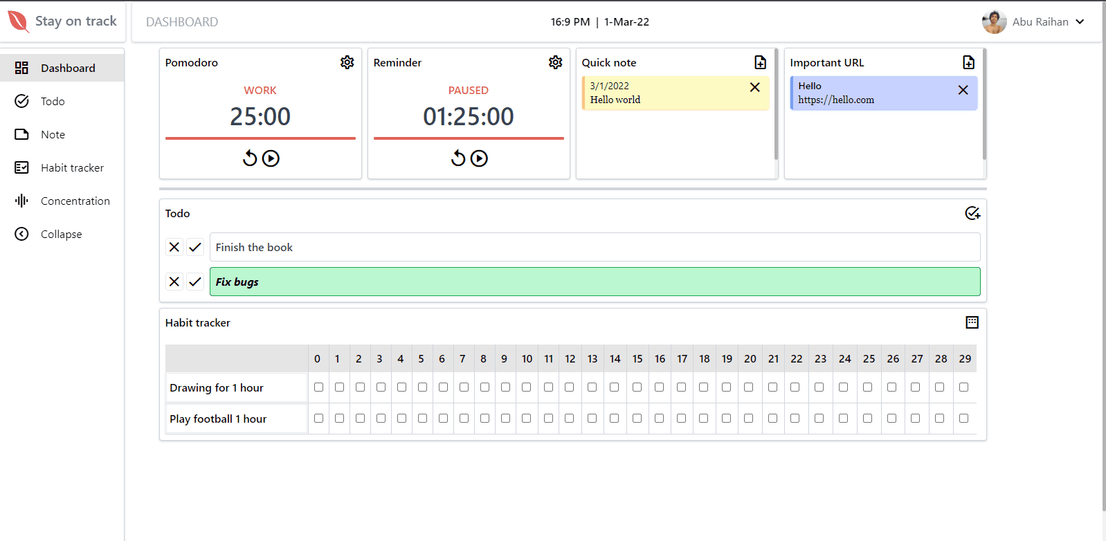 What is stay on track Stay on track is an app that provides people to stay motivated to their vision. Why stay on track A lot of people become demotivated during their work. Stay on track provides people to avoid deportation and stay motivated to the...