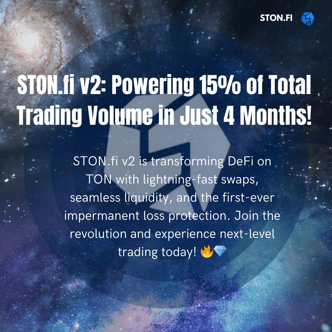 😲 STON.fi v2 is making serious waves! 15% of total trading volume in just four months is a huge milestone. The future of DeFi on TON is looking bright! 🚀🔥