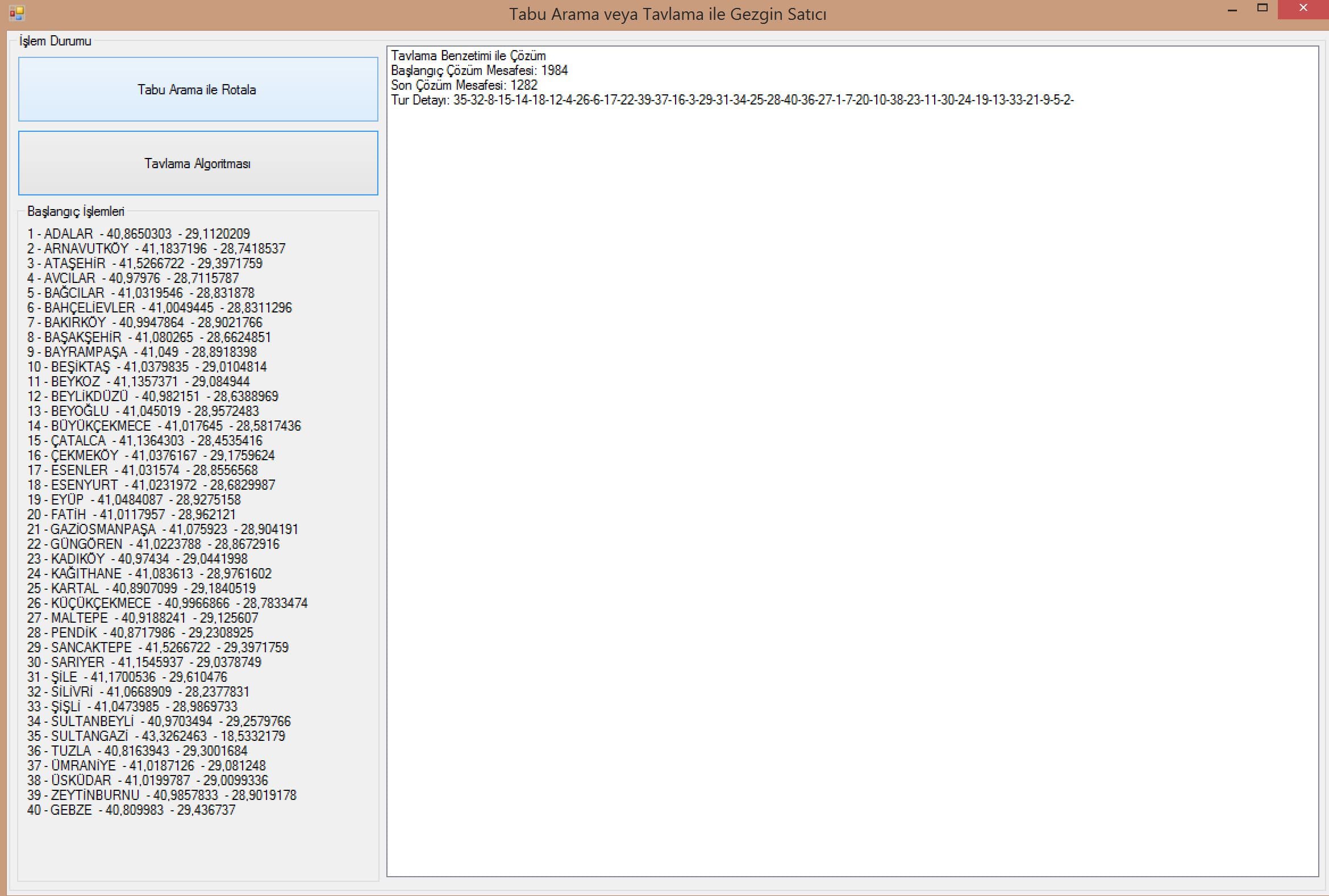 Tavlama Benzetimi ve Tabu Arama Algoritmaları ile Gezgin Satıcı Problemi (C#)
