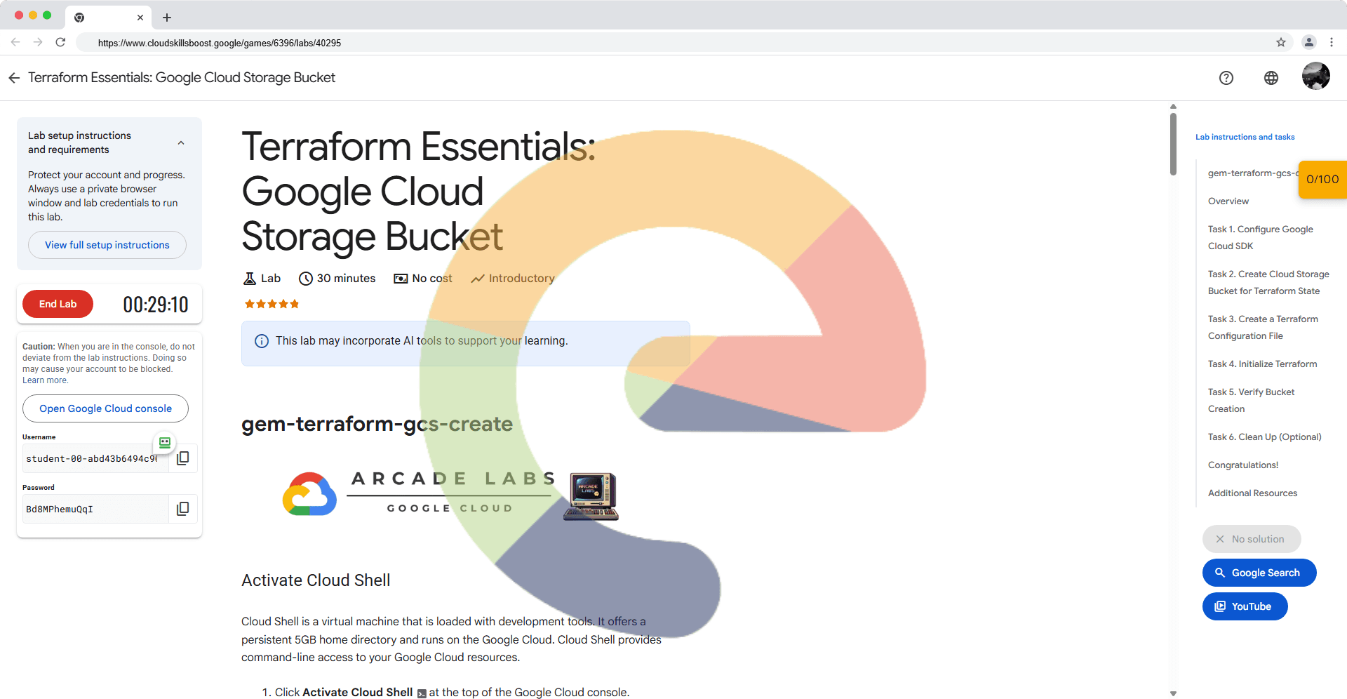 Activate Cloud Shell Cloud Shell is a virtual machine that is loaded with development tools. It offers a persistent 5GB home directory and runs on the Google Cloud. Cloud Shell provides command-line access to your Google Cloud resources. Click Activ...