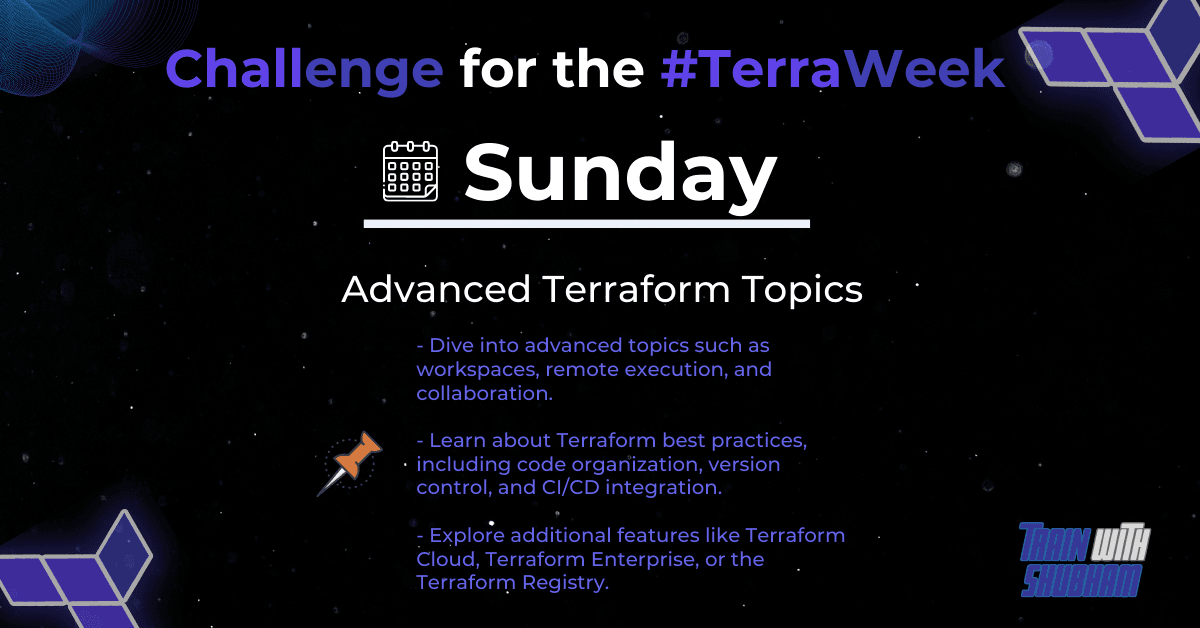 Task 1: Workspaces, Remote Execution, and Collaboration ✨ Objective: Gain proficiency in using workspaces, remote execution, and collaboration features in Terraform. 📚 Steps: Dive into the concepts of Terraform workspaces and understand how they ca...