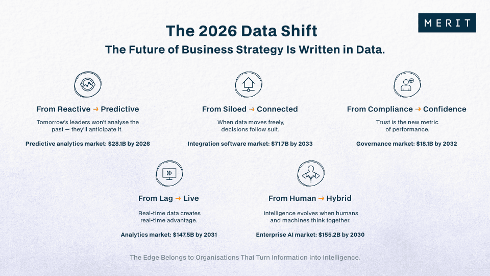 2026 is the year data stops being a support function and becomes the strategy itself. Look around any industry today: the organisations leading the way aren’t just collecting data; they’re building strategy on it. Here are 5 shifts redefining how org...