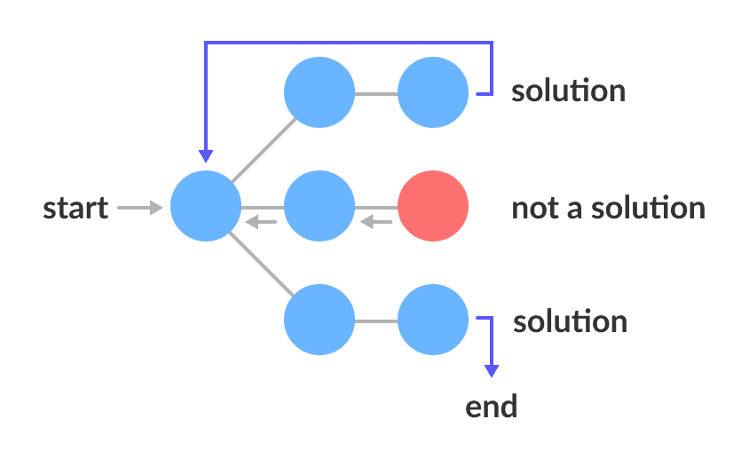 Backtracking is an algorithm that is often used for problems whose solutions are generated in stages and each new stage depends on the previous. As soon as it determines a particular stage has no possible solution, it abandons it (backtracks) and goe...