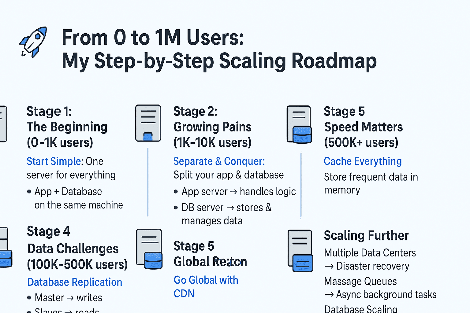 Introduction: The Scaling Journey Every successful digital product begins with a simple architecture - often just a single server handling everything. But as user numbers grow, this simple setup inevitably hits performance limits. The journey from ze...