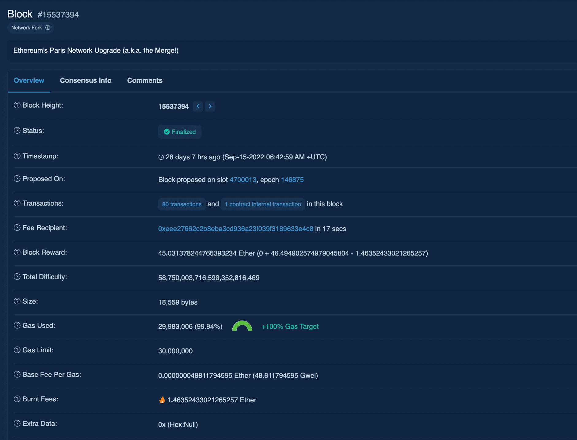The Ethereum Merge: Block 15537394