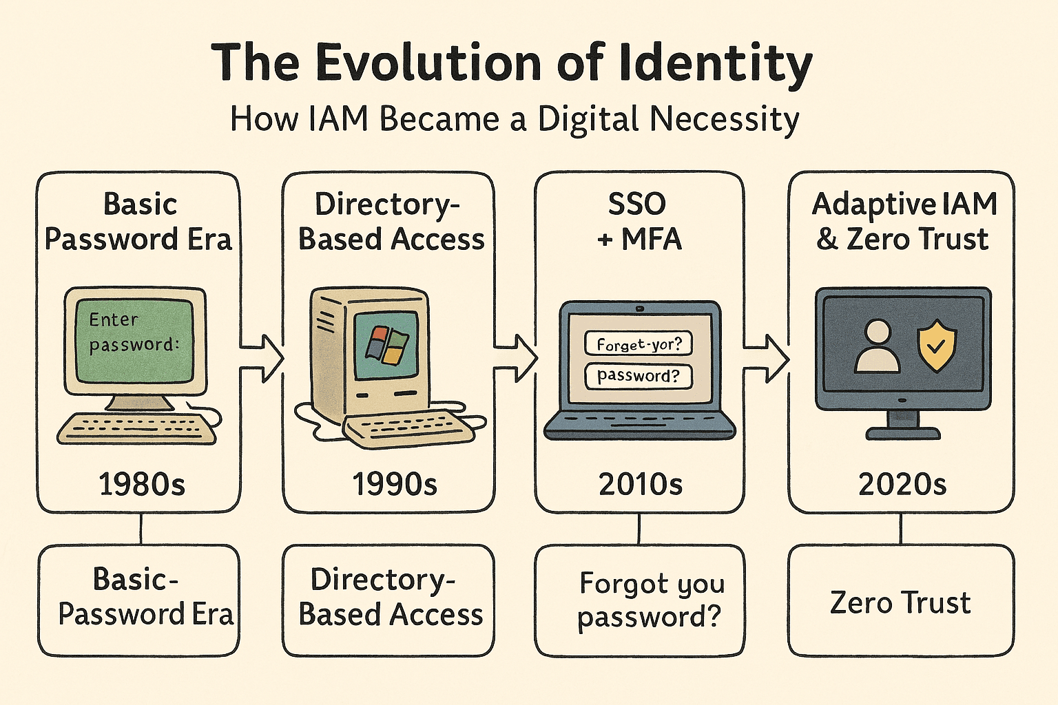 🕹️ 1. The 1980s – Basic Password Era 💬 “Welcome to your terminal. Enter password:” Back then, identity was simple: 🔸 One system 🔸 One password 🔸 Stored in plain text 🔓 Try it yourself:Visit Neocities — a retro-style web host.You’ll see ho...