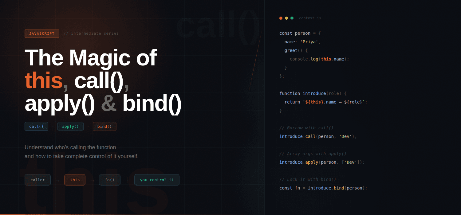 JavaScript has a keyword that confuses nearly everyone the first time they meet it. It's two letters long. It changes meaning depending on where it lives. It's called this — and once you actually get