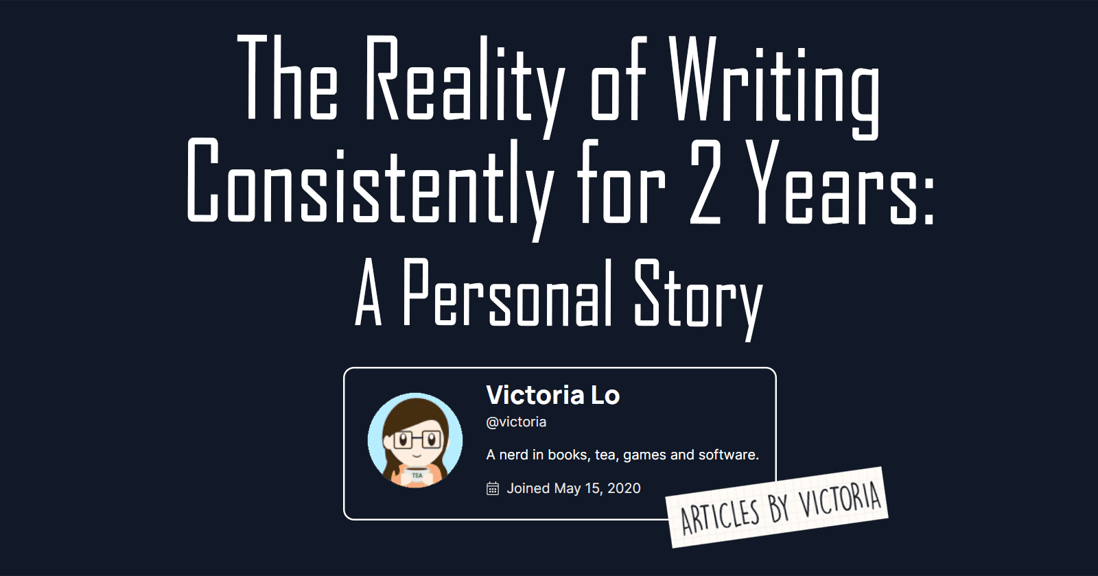 By the way, I don't think I've ever opened Hashnode and not see a "Victoria Lo" article. 😅 That is definitely evidence of hard work, discipline, and passion.