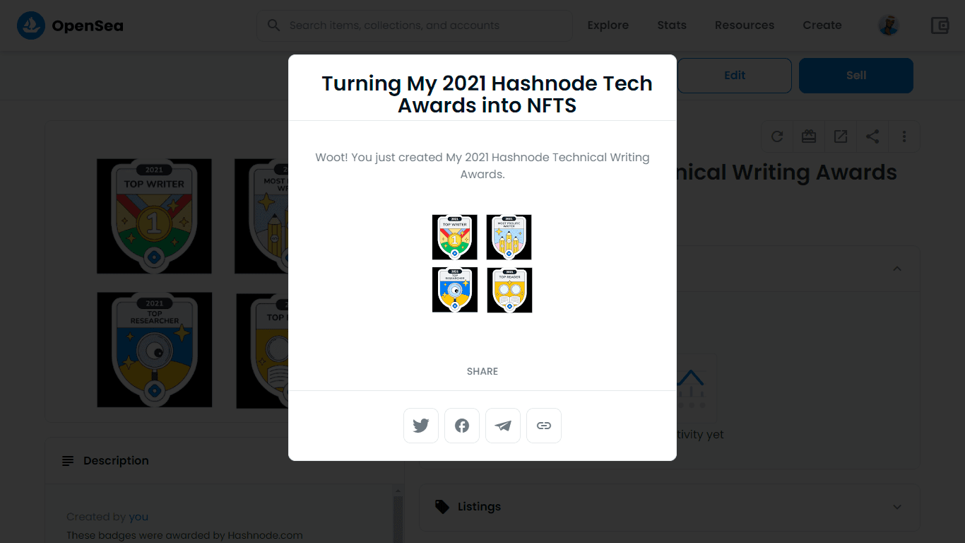 So, After reading How To Mint an NFT - A Step-by-Step Guide To Creating Your First NFT by Favor Onuoha, I decided to Mint my Hashnode award badges as my first NFT and I will be showing you how I did it. I don't know if that's actually a good idea, ...