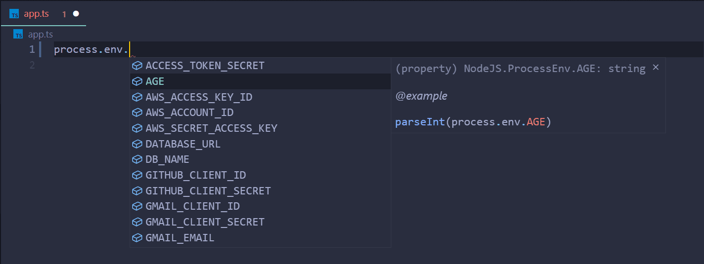 Typing process.env automatically with this VSC extension