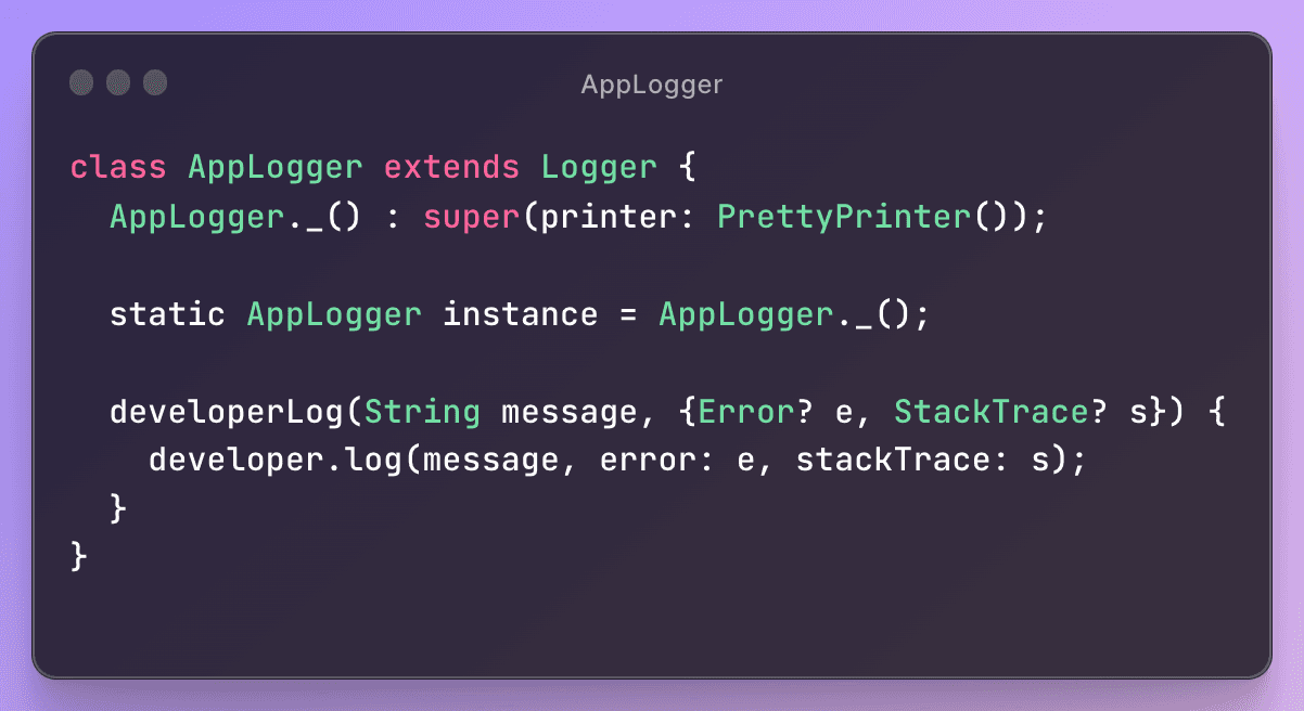 Ok, So let's start with simple logging first, Which every developer knew print() easy to start by logging in to flutter. Right π Okay now, let's play with more sample log data. "Hello world!" "I\'m Kishansinh Parmar" https://gist.github.com/imki...