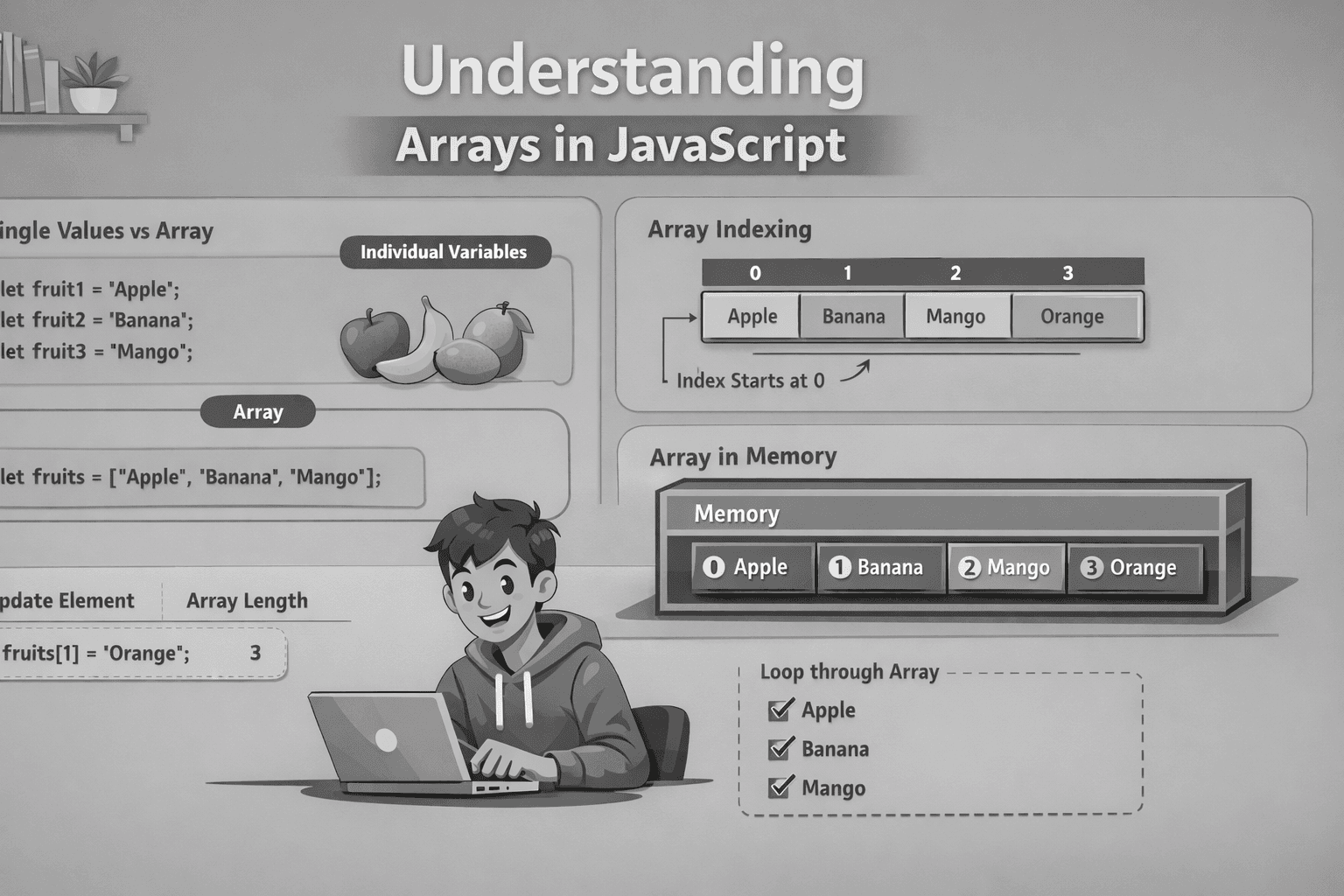 first, why do we need an Array,? when we already have variables. when we declare a variable it only stores one value but what if we want to add more than one value of the same type. it becomes messy t