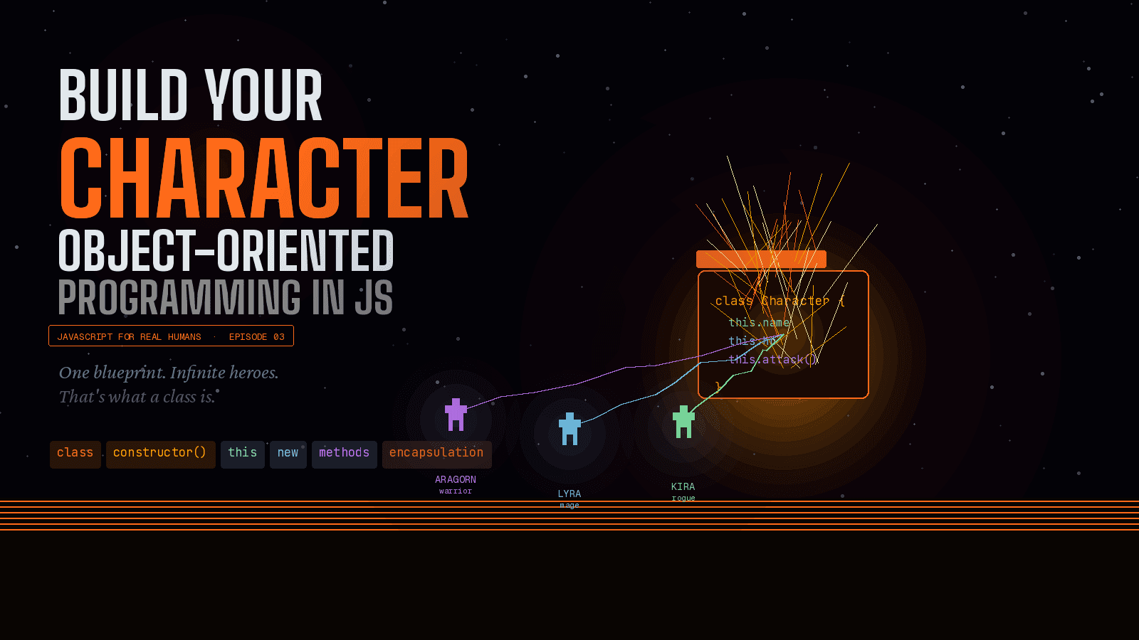 Build Your Character — Object-Oriented Programming in JavaScript One blueprint. Infinite heroes. That's what a class is. What you'll learn in this blog: What OOP is and why it exists How a class i