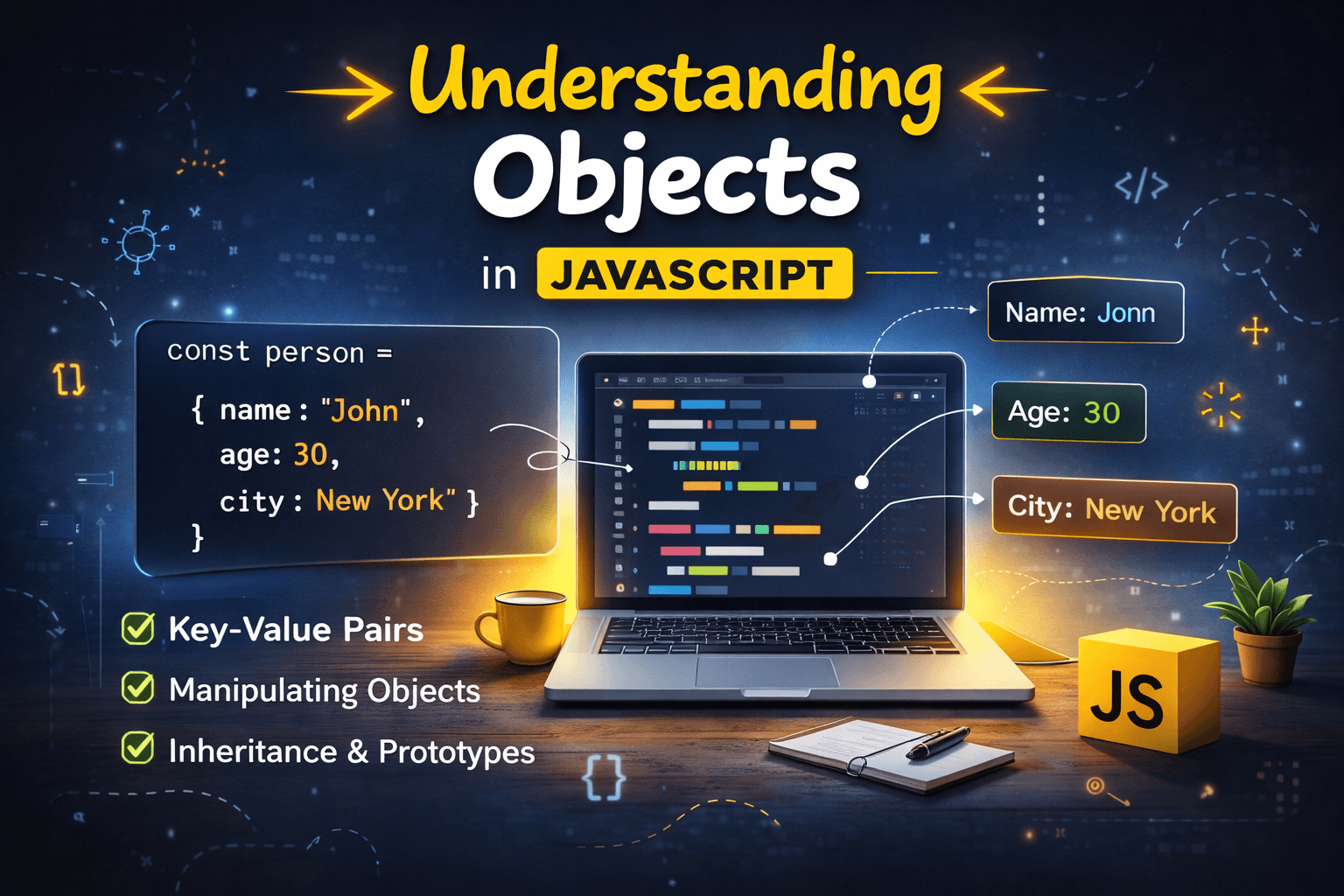 What objects are and why they are needed An object is a non-primitive data type in JavaScript. It is a collection of key-value pairs, It is stored by reference in the JavaScript variable, which means