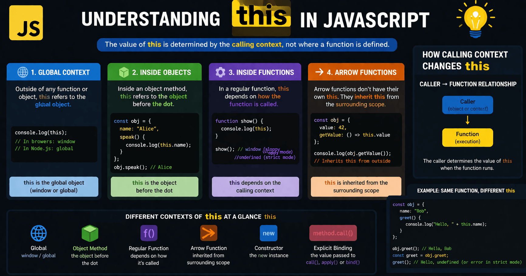 Introduction: Imagine you hear someone say: “I am running.” Your immediate question is: “Who is ‘I’?” The meaning of “I” depends on who is speaking. In JavaScript, this works the same way.It doesn’t