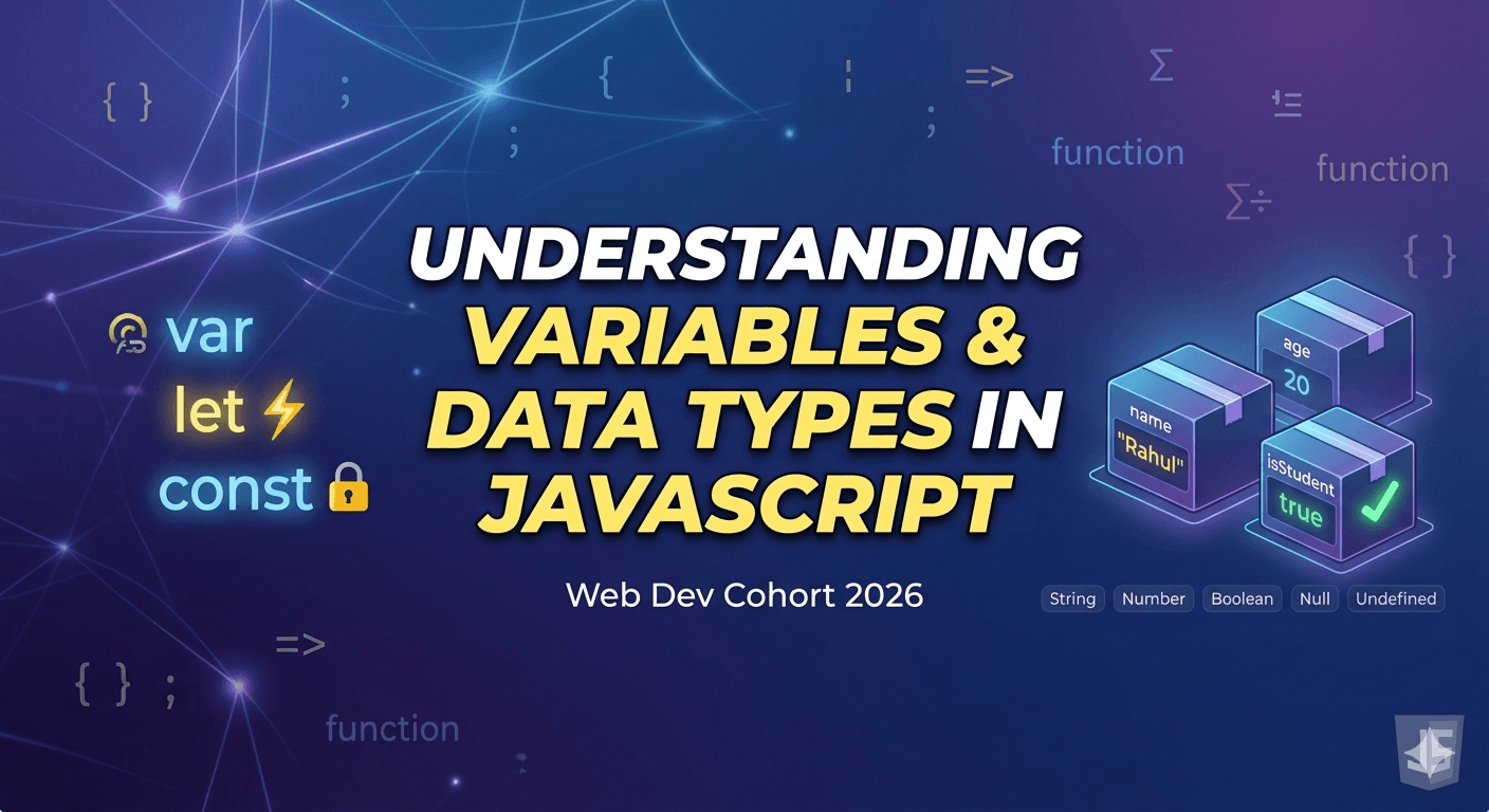 When we write programs, we often need to store information such as a user's name, age, score, or login status. In JavaScript, this information is stored using variables. Along with variables, we also