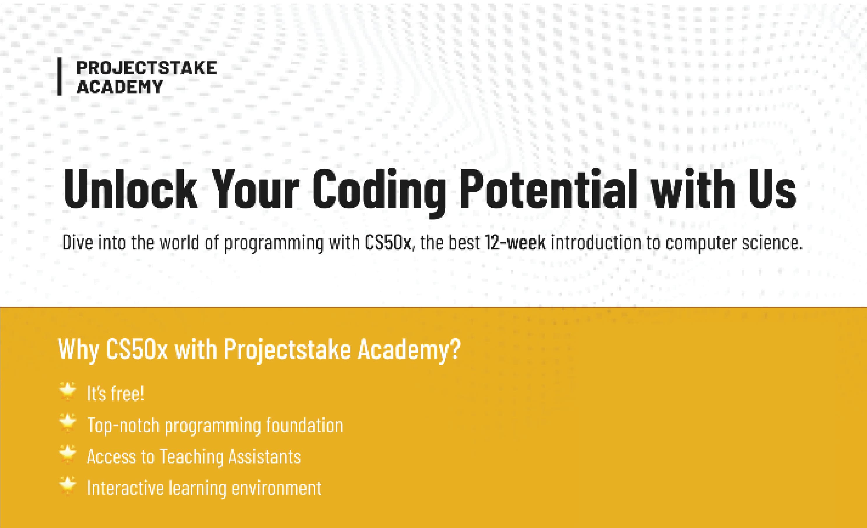 Are you ready to embark on a coding odyssey that will transform your understanding of computer science and programming? Projectstake Academy invites passionate individuals to unlock their coding potential through the upcoming CS50X program. In this b...