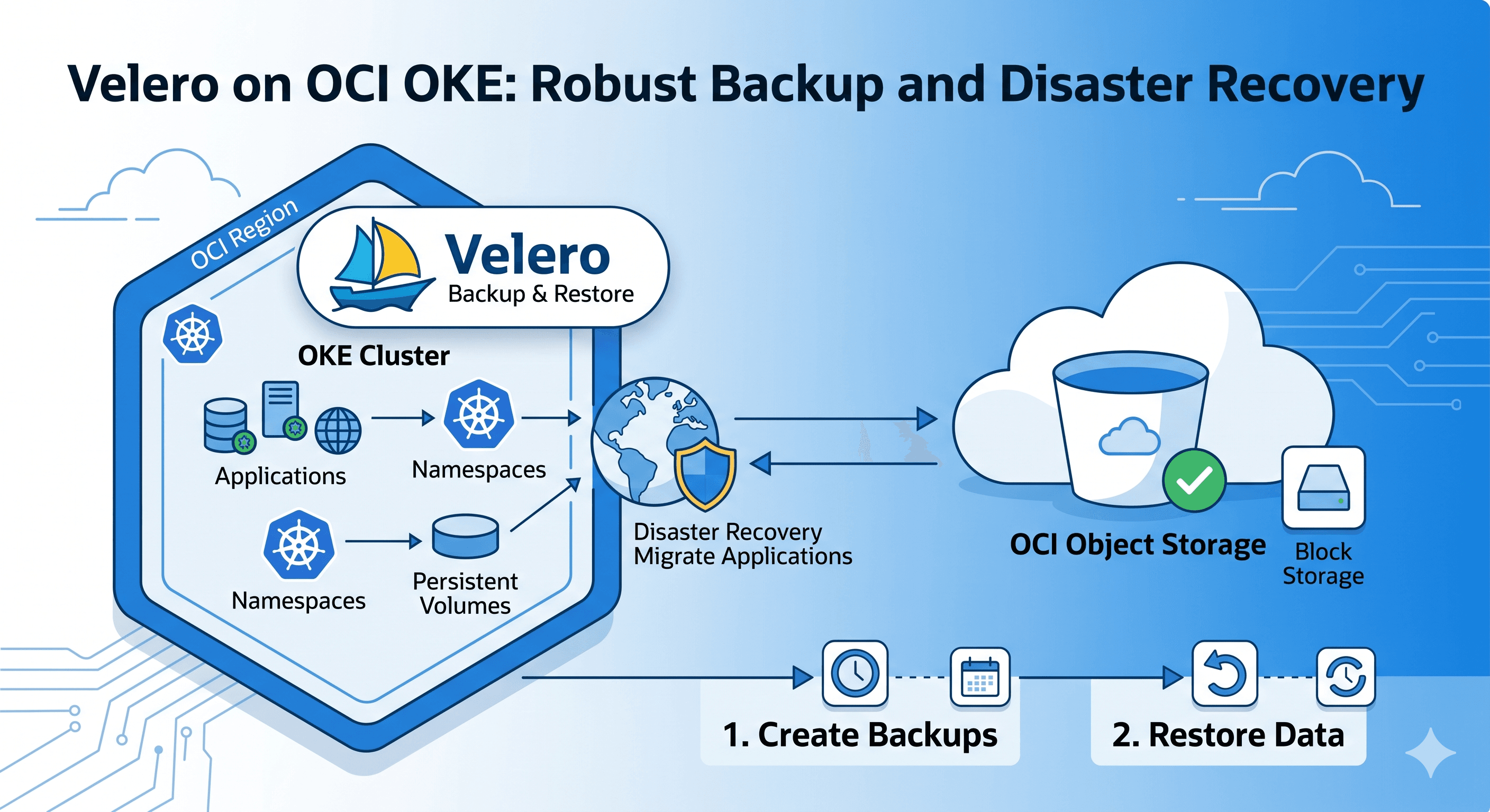 Kubernetes workloads running on Oracle Kubernetes Engine (OKE) require a reliable backup and disaster recovery strategy. Velero is one of the most trusted open-source tools to back up and restore Kube