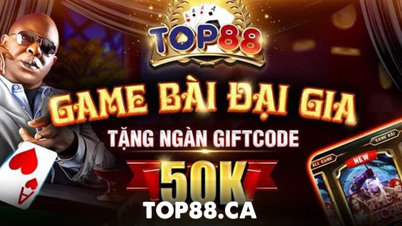 Top88 cung cấp nhiều ưu đãi hàng ngày qua Giftcode, đặc biệt là mã 50.000 VNĐ cho người mới. Người chơi có thể nhận thêm giftcode giá trị bằng cách tham gia các hoạt động trên trang và fanpage. Các chương trình khuyến mãi bao gồm phần thưởng cho thàn...