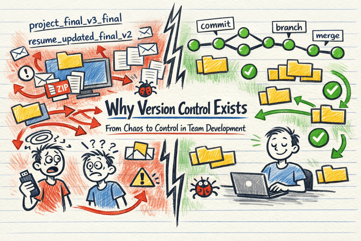 Most of the people who start learning git have come across a million-dollar question: why do we even need a Version Control System when we can share our code on Gmail in a zip format The ‘Final_Final_