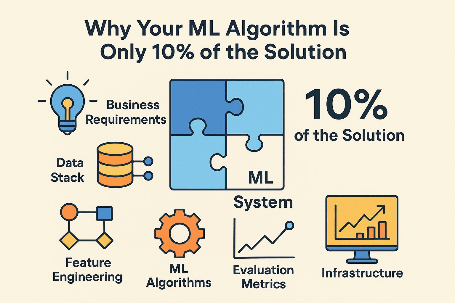 When we talk about machine learning, it's easy to get fixated on the algorithms. We think of neural networks, logistic regression, or XGBoost. But the truth is, the algorithm is just a small piece of a much larger, more complex puzzle. A production-r...