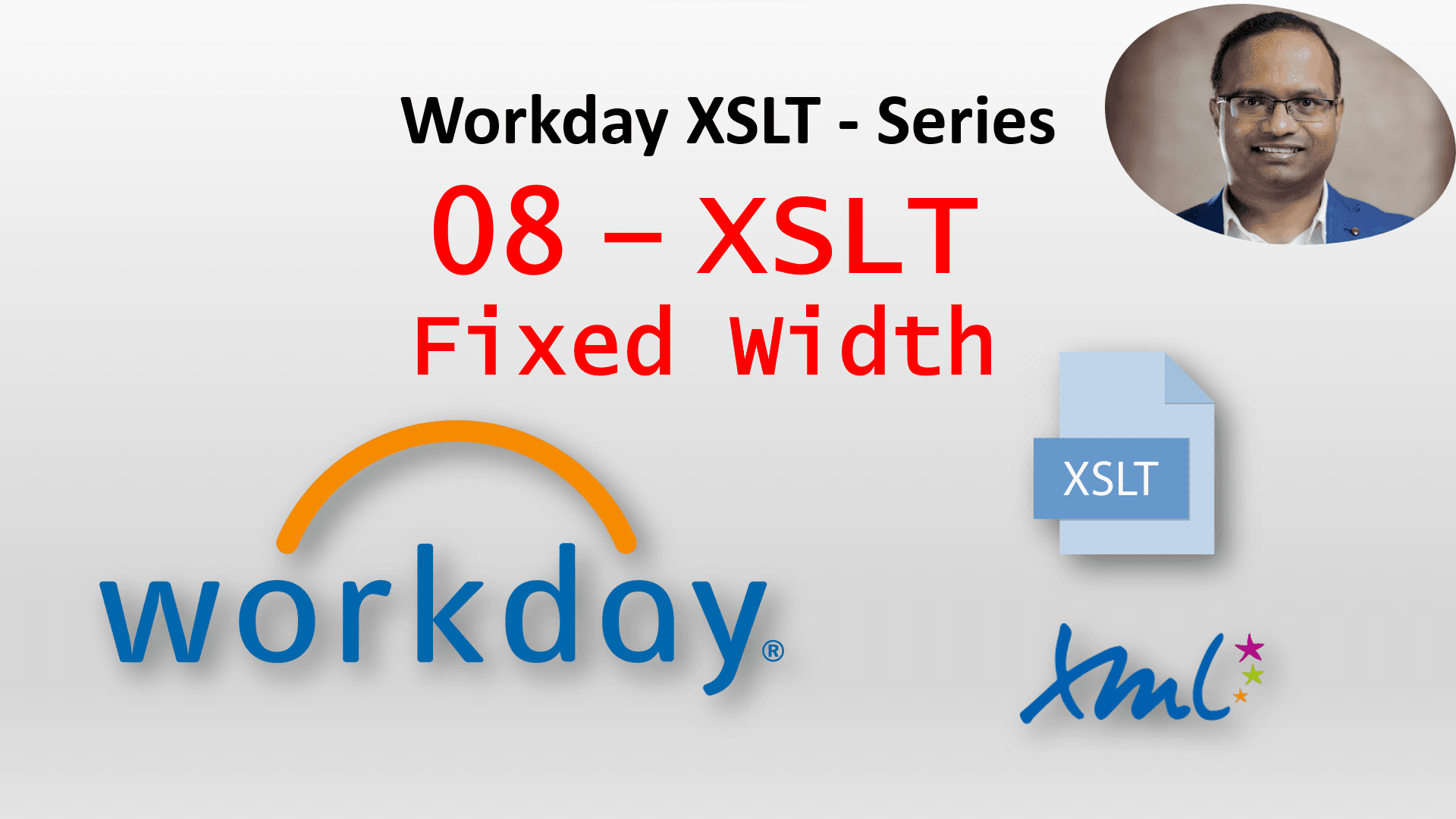 Why fixed width? Let's learn XSLT through examples. This is the continuation to the previous article Workday XSLT 07- Basic XSLT Examples (For-Each-Group). YouTube Video Online XSLT Editor https://www.freeformatter.com/xsl-transformer.html XSLT - Fix...