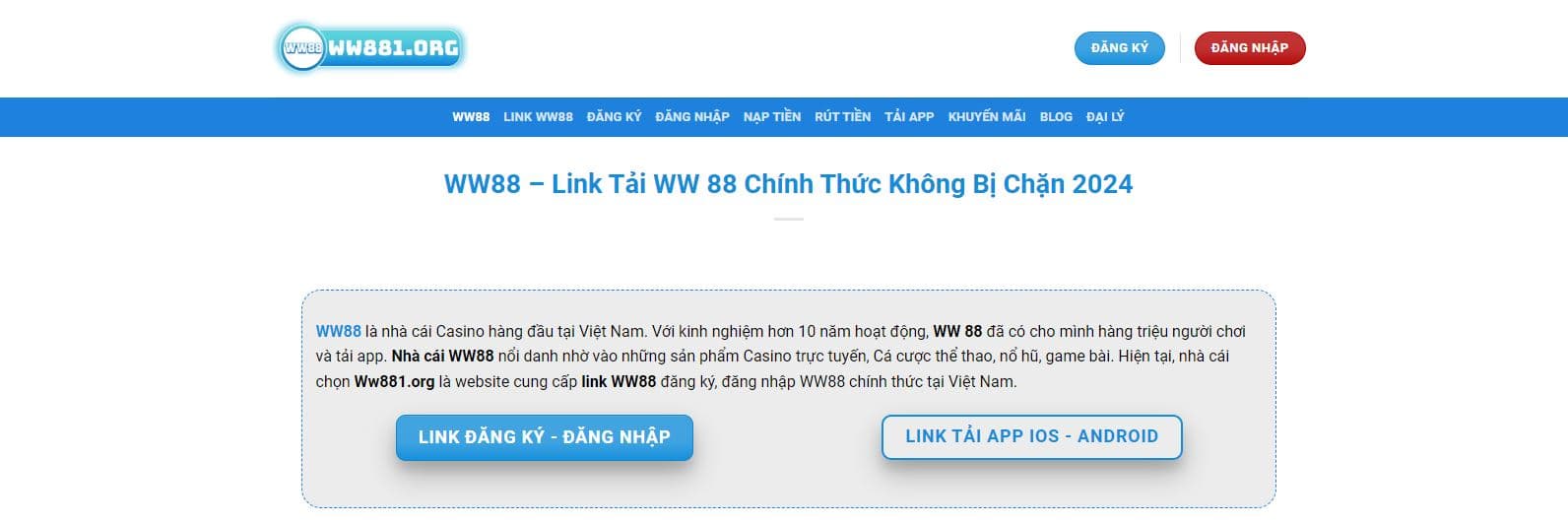 Giới thiệu WW88 là nhà cái đã thành lập và hoạt động được hơn 10 năm trong thị trường cá cược trực tuyến châu Á nói chung và thị trường tại Việt Nam nói riêng. Trong suốt thời gian hoạt động bền bỉ này, nhà cái WW 88 đã cung cấp hàng trăm trò chơi Ca...